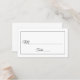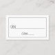 O Elegante Script Black and White Wedding Place Card apresenta o título no estilo de fonte do script elegante preto com borda preta na placa plana branca.