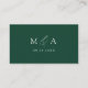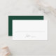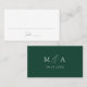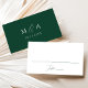 Cartões modernos de núpcias com um roteiro de caligrafia verde-escuro em fundo branco. A parte de trás dos cartões de lugar verdes apresenta as iniciais do seu monograma com a data do seu casamento mostrada abaixo. As elegantes cartas de roteiro são perfeitas para recepções de casamento modernas, jantas de ensaio e outros eventos especiais.
