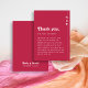 Expresse a sua gratidão em estilo com o Casamento Rosa Brilhante Brilhante Cinzento, Obrigado Placa de Lugar. Apresentando um design cor-de-rosa-quente ousado com tipografia inspirada na tela, esta placa serve como um obrigado pensado - você e uma configuração de na moda para seus convidados. Perfeito para adicionar um pop de cor às mesas de recepção enquanto cria um toque personalizado. Totalmente personalizável para combinar com seu tema de casamento!