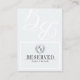 Faça um sinal RESERVADO personalizado para seu convidado especial na mesa honorária com estes cartões de lugar. Cartão de lugar simples minimalista com uma crista monográfica elegante: crista monograma de arte de linha inspirada em vinheta com tipografia elegante. A parte de trás é um simples monograma em branco sobre fundo branco de geada clara, elegância subestimada com esta cinza de luz muito chique. A placa não é dobrada, quando dobrada, o tamanho será de 2,5"x1,75".