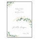 Os cartões de lugar de casamento rústicos apresentam vegetação botânica de eucalipto em aquarela e fonte e letra modernos e chiques, elegantes e românticos, ótimos para casamento rústico moderno, casamento em jardim botânico e casamento boho no campo.
