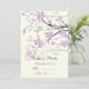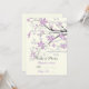 Cartão de lugar personalizado de casamento com ramo de magnólia com flores roxas, apresentando um belo ramo de magnólia com flores e botões roxos. Marfim, preto, cinza, roxo. Dobre o cartão ao longo do centro.