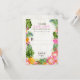Tema de casamento Luau flor tropical, abacaxi, madeira branca e design de cartão de lugar de casamento de praia rústica.