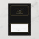 Download instantâneo linhas geométricas elegantes enquadram os nomes dos seus convidados com seus nomes personalizados e data especial definida em tipografia clássica no verso deste cartão de lugar de casamento preto e dourado chique. Projetado por Thisisnotme©