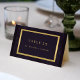 Um cartão de lugar para casamento simples e minimalista, púrpura escura e falsa tipografia de ouro, com número de tabela e nome de convidado individual.++++ Personalize-o ainda mais com os nomes de casais do casamento e a data na parte de trás. NOTA: adicione o número da tabela e o nome de convidado para cada cartão e adicione cada um ao carrinho separadamente. Dobre a placa na linha média guia.