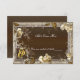 Fundo marrom rústico com rosas brancas e alianças de casamento em ouro. Deixe seus convidados saberem onde devem se sentar com este lindo cartão de lugar. Personalize o cartão alterando o texto nos campos fornecidos na frente e no verso. Você pode alterar o estilo da fonte, tamanho, cor, bem como o tipo e estilo de papel.