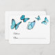 Cartão de lugar de mesa de casamento com borboleta em aquarela azul. Escolha elegante para casamentos de verão. Parte de uma coleção de casamento. Cartão com escolha de refeição.