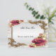 Lindo quadro de rosas vermelhas e padrão de folhas de ouro. Deixe seus convidados saberem onde devem se sentar com este lindo cartão de lugar. Personalize o cartão alterando o texto nos campos fornecidos na frente e no verso. Você pode alterar o estilo da fonte, tamanho, cor, bem como o tipo e estilo de papel.