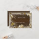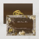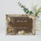 Fundo marrom rústico com rosas brancas e alianças de casamento em ouro. Deixe seus convidados saberem onde devem se sentar com este lindo cartão de lugar. Personalize o cartão alterando o texto nos campos fornecidos na frente e no verso. Você pode alterar o estilo da fonte, tamanho, cor, bem como o tipo e estilo de papel.