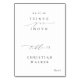 Desenho elegante minimalista moderno chic com letra em fonte serifada atemporal em preto e branco, e nome do casal no verso, simples e limpo. Ótimos cartões de lugar dobráveis para casamento romântico minimalista, casamento clássico moderno, casamento simples luxuoso.