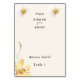 Este cartão de lugar dobrável de casamento elegante é perfeito para o seu casamento minimalista moderno. Esta design apresenta caligrafia simples preta com verde, margarida, flores do cosmos e abelhas em um fundo branco fora para combinar com seu clássico casamento tradicional ou casamento de boho minimalista no primavera, verão, outono. Por favor, sinta-se à vontade para nos contactar com quaisquer perguntas sobre esta design.