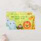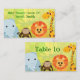 Uma cena de selva divertida com árvores, vinhas, e um rio como fundo e um elefante, macaco, leão e girafa olhando. Descrito em um quadro como brilho. Excelente para um chá de fraldas de menino ou menina.