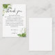 Um cartão de agradecimento de recepção de casamento botânico elegante com folhagem de eucalipto, personalizado com uma mensagem especial e os nomes da noiva e do noivo. Criado por Thisisnotme©