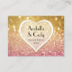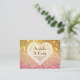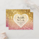 COR PALETA: cor metálica do ouro, COLEÇÃO DESIGN cor-de-rosa: uma placa de lugar da mesa DIY correspondente a ser usada para recepções de casamento, chás de panela ou eventos comerciais formais. Projetado para combinar com a opção de convite do estilo do canto do ponto de partida, este design foi criado com um lindo ouro quente desbotando para pincelar o rosa e, em seguida, brilhante cintilação rosa e brilhante, com aspecto brilhante da imagem Bokeh. Moderno e moderno estilo de bling feminino, este convite faz parte de um simples convite para casamento contemporâneo. Uma camada semitrente semitransparente com borda branca tem um layout tipográfico de tipografia de fontes do texto. Tem bonito e doces cores pastéis e uma sensação feminina. Legal, quadril e tendências - claro que agradeço a noiva pelo seu Chá de panela e tema.
