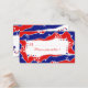 Um design patriótico vermelho, branco e azul com linhas onduladas e estrelas. Personalizar texto.