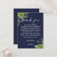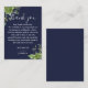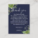 Um elegante eucalipto verde, marinho botânico, obrigado de casamento azul, seu cartão de recepção, personalizado com uma mensagem especial e os nomes da noiva e do noivo. Projetado por Thisnotme©
