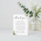 Um verde elegante deixa o obrigado de celebração do casamento, seu cartão de recepção. Personalizado com seu obrigado especial, você define a mensagem na tipografia do na moda. Você pode personalizar o fundo para a sua cor favorita do tema do casamento. Um obrigado especial para os seus hóspedes. Projetado por Thisnotme©
