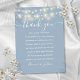 Uma elegante carta de agradecimento de recepção de casamento azul empoeirado com lindas luzes de corda. Personalizado com sua mensagem especial de agradecimento em tipografia elegante. Um agradecimento especial para os seus convidados. Concebido por Thisisnotme