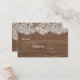 Esta suíte de convite de casamento rústico apresenta um fundo de grãos de madeira com um delicado pedaço de renda branca no topo.
