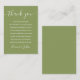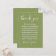 Um conjunto de cartões de agradecimento de celebração de casamento. Personalizado com a sua mensagem de agradecimento especial, em tipografia com estilo, sobre um fundo verde musgo. Você pode adaptar o fundo à cor do tema do seu casamento. Um agradecimento especial para os seus convidados. Desenhado por Thisisnotme©