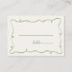 Os crachás de lugar vêm em um esquema de cores divertido de verde em ecru.
