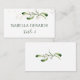 Elegante cartão de lugar plano com uma ilustração de musgo e folhagem dourada em estilo aquarela.