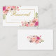 Placa de Local de Mesa Plana Dourada Floral Cor-de-Água Rosa Floral Nome Reservado