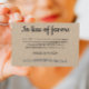 Estes cartões de visita marrons "em vez de favores" são uma maneira maravilhosa de dizer aos seus convidados que você fez uma doação para sua caridade favorita em homenagem a eles no dia do seu casamento, assim como informar seu convidado sobre o assento deles.