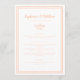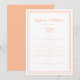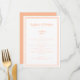 Simples, minimalista e elegante, o cardápio de casamento apresenta um design contemporâneo com uma moldura dupla em tom de pêssego contemporâneo sobre um fundo branco crocante. A redação tradicional proporciona sofisticação atemporal e moderna. Personalize o design do casamento com os detalhes do seu cardápio em letras e script em pêssego. O verso do cartão combina com pêssego sólido.