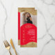 A placa de menu contém bordas de ouro refinadas e um design vermelho em negrito que adiciona um toque elegante ao seu evento especial. Com amplo espaço para adicionar uma foto da(s) honra(s), este cartão de menu é perfeito para adicionar um toque pessoal à sua celebração. Quer você esteja hospedando um casamento, aniversário, aniversário ou outro evento marco, este cartão de menu irá adicionar um toque sofisticado à sua capa de mesa.