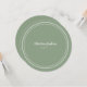 Cartões personalizáveis de lugar para convidados com placa redonda para casamento apresentam um design minimalista em verde rustico e branco. Delicie seus convidados com cartões personalizados com o nome de cada convidado e número da mesa! O lado oposto é verde sólido. Personalize nosso modelo simples de usar com os detalhes do seu casamento! Encomende cada cartão separadamente após a personalização do nome do convidado com o modelo.