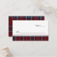 Cartão de lugar para recepção de casamento / cartão de escolta de xadrez adorável, feito em branco, com uma banda de xadrez azul, vermelha e clã negra MacTavish tartan, na parte inferior. Gráficos de uma borda enrolada decorativa e um visual vermelho de costura, decoram a área de texto. Produtos de casamento correspondentes disponíveis.