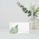 Casamento Samambaia Verde Minimalista. Cartão de lugar de casamento com ilustração botânica simples e moderna com manchas de aquarela.