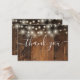 Cartão De Lugar String Lights Rustic Barn Wood Casamento Obrigado