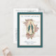 Apresentando uma bela e azul floral tradicional imagem católica da Virgem Bêntrica Maria, Nossa Senhora de Graça sobreposta a rosas cor-de-rosa e design de safra.