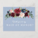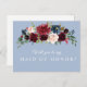 Este design apresenta florescentes, marinhos e incháveis sobre um fundo azul empoeirado, azul empoeirado você será minha madrinha de casamento.