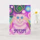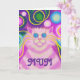 Querida Groovy! Um gato listrado rosa com bigodes giratórios e um fundo com um arco-íris psíquico. Um cartão de saudação com um design personalizável cor-de-rosa, azul, verde, roxo e amarelo para você personalizar com seu próprio texto, imagens e ideias. O texto pode ser facilmente alterado usando o modelo fornecido ou clique no botão 'Personalizar o texto' para fazer outras alterações. Um desenho de lápis colorido digitalmente melhorado por Jess Perry.