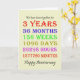 Terceiro cartão de aniversário de casamento, contando os anos, dias, meses, horas e minutos que você foi casado. Engraçado, mas com uma dentro romântica. Um cartão para dar pausa para pensar! Foram tidos em conta anos saltos!