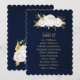 quadro de assentos personalizável elegante flores brancas de cartão com algumas folhas douradas marinho número de tabela azul com cartão de nome de convidado