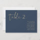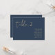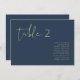 Este gráfico de números de tabela apresenta uma fonte escura escrita à mão e um design moderno minimalista com uma combinação moderna de azul e ouro marinho. Altere facilmente o número e os nomes, juntamente com todas as cores, para corresponder totalmente ao seu evento.