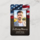 Honre a vida e o serviço de uma pessoa amada com este cartão memorial patriótico, com um pano de fundo de bandeira americano ousado e espaço para uma foto carinhosa. A design da frente inclui o nome e as datas de vida, oferecendo um tributo digno à sua memória. O lado inverso oferece espaço para um poema significativo, oração, ou mensagem pessoal, fazer-a como um guardião atencioso para a família e os amigos. Perfeito para serviços memoriais, funerais, ou como lembrança duradoura, este cartão combina elegância com orgulho nacional, prestando homenagem tanto ao indivíduo quanto ao seu legado.