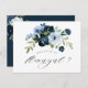 Um adorável desenho de grinalda floral com flores elegantes em azul poeirento e azul marinho. O texto e as cores podem ser personalizados.
