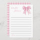 Crie memórias sinceras com nosso Cartão de Mensagem de Nota de Tempo de Coquete do Arco Rosa! Projetada com matizes macios, um elegante arco cor-de-rosa e delicado detalhe da fita, esta carta captura lindamente a estética coquete. Perfeito para os convidados escreverem mensagens, desejos ou previsões especiais para o convidado de honra abrir no futuro, acrescenta um toque sentimental e elegante a qualquer celebração de aniversário. Um eterno que faz lembrar ainda mais especial!