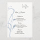 Este modelo de placa de menu é mostrado no papel básico em branco com uma adorável design de impressão de videira azul ardente. Script e texto padrão em preto. Personalize os nomes e os itens de menu para o seu, clicando no botão personalizar, procure à direita e encontre as caixas adequadas para alterar as informações. Impressão de ações