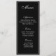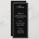 A placa de menu é mostrada em papel de estoque básico da placa com um elegante design preto e branco. O script e o texto padrão são mostrados em branco. Personalize os itens de menu clicando no botão personalizar edição, procure à direita e encontre as caixas adequadas para alterar suas informações.