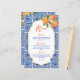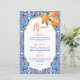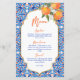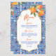 Ela encontrou seu cartão de cardápio azul-alaranjado principal, modelo, azulejo azul Majjolica espanhola, chás de panela mediterrâneos espanhóis, com moderno roteiro casual, bom para as funções de verão ao ar livre cartões de menu personalizados.