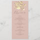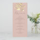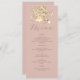 Elevem a sua mesa de recepção com esta carta de cardápio cor-de-rosa romântica, lindamente adornada com flores silvestres douradas e roteiro elegante. O layout vertical oferece um formato limpo e refinado para exibir suas seleções de curso — perfeito para casamentos rústicos, jardins ou com temas antigos.