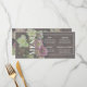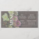 Cartão de menu com primavera vivo florescendo em tons movidos e mudados contra um pano de fundo de madeira de noz escura. Um simples texto branco permite que o seu convidado saiba o que está em jogo. Este design faz parte da nossa Coleção Hellebore Harvest da Caixa de Joias. Visite nossa loja para mais designs.