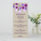 Realce a decoração adicionando um cartão de menu. Enquanto seus convidados aguardam ansiosamente a entrada da noiva e do noivo ou a apresentação do convidado de honra, eles podem encontrar um cartão de menu em seu cenário, acrescenta um toque agradável. Personalize e crie o menu adicionando e alterando o texto nos campos fornecidos. Você pode alterar o estilo, o tamanho e a cor da fonte, o tipo de papel.