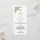 Cartão de menu de recepção batismo. Personalize e adicione um nome, data e menu. Um fundo branco chic. Decorados com folhas de eucalipto de cor aquosa, prigos, verde, folhas de ouro falsas. Uma cruz de ouro falsa.